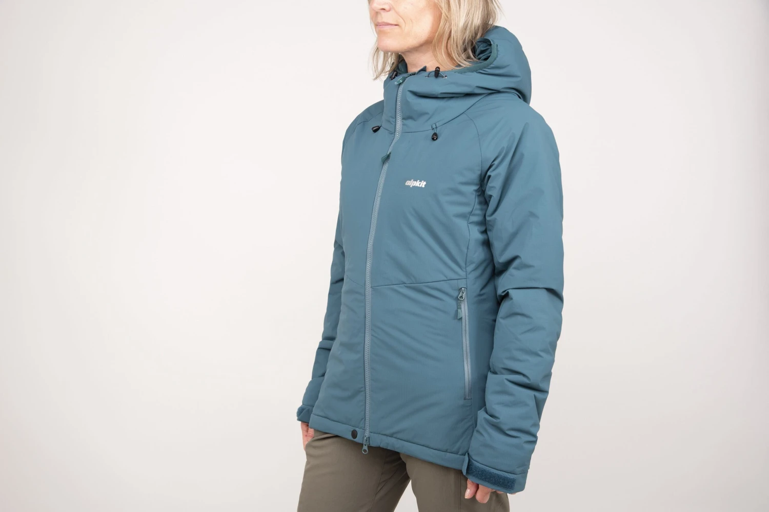 For mountaineering use we’ve included a helmet-compatible hood with a wired peak to deflect scattering spindrift and inner cuffs stop snow and draughts from creeping under gloves. The main zip is two-way for belaying ease and the sleeves have slightly less insulation than the body to allow to you swing your axes freely.