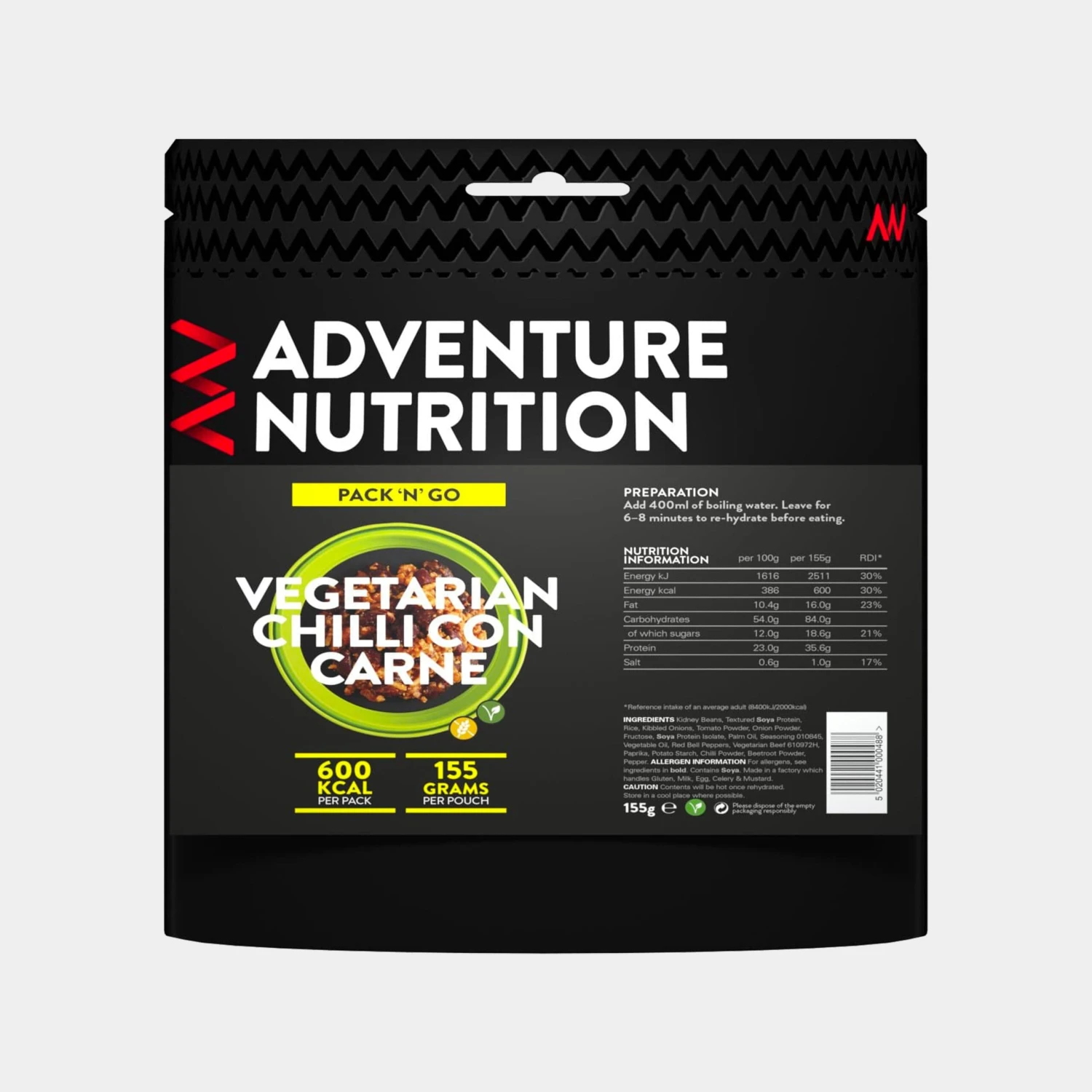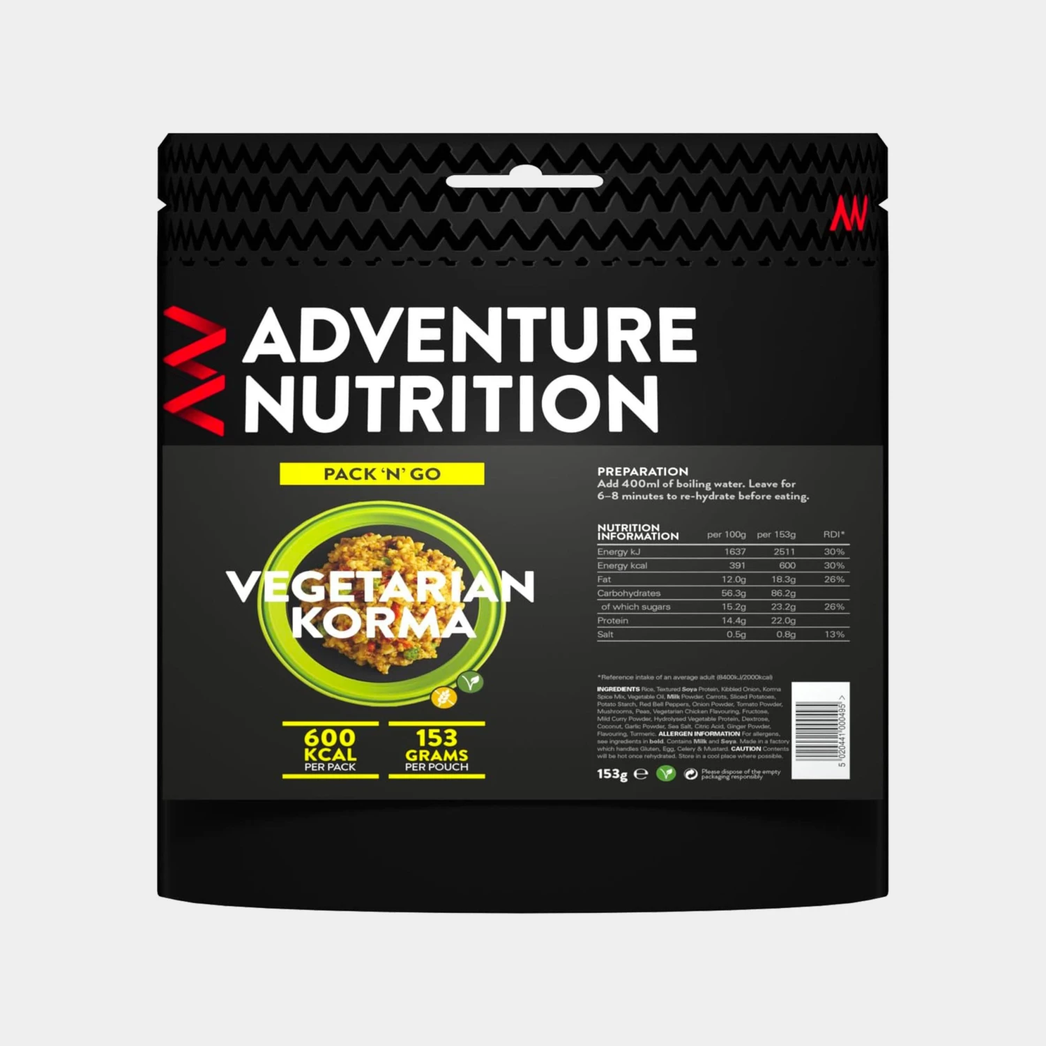 Adventure Nutrition Pack ‘n’ Go has been developed by nutritional experts to provide instant camping and trekking food. Each meal has a fixed 600kcal of energy, to fill you up before you start the day/crawl into your sleeping bag.