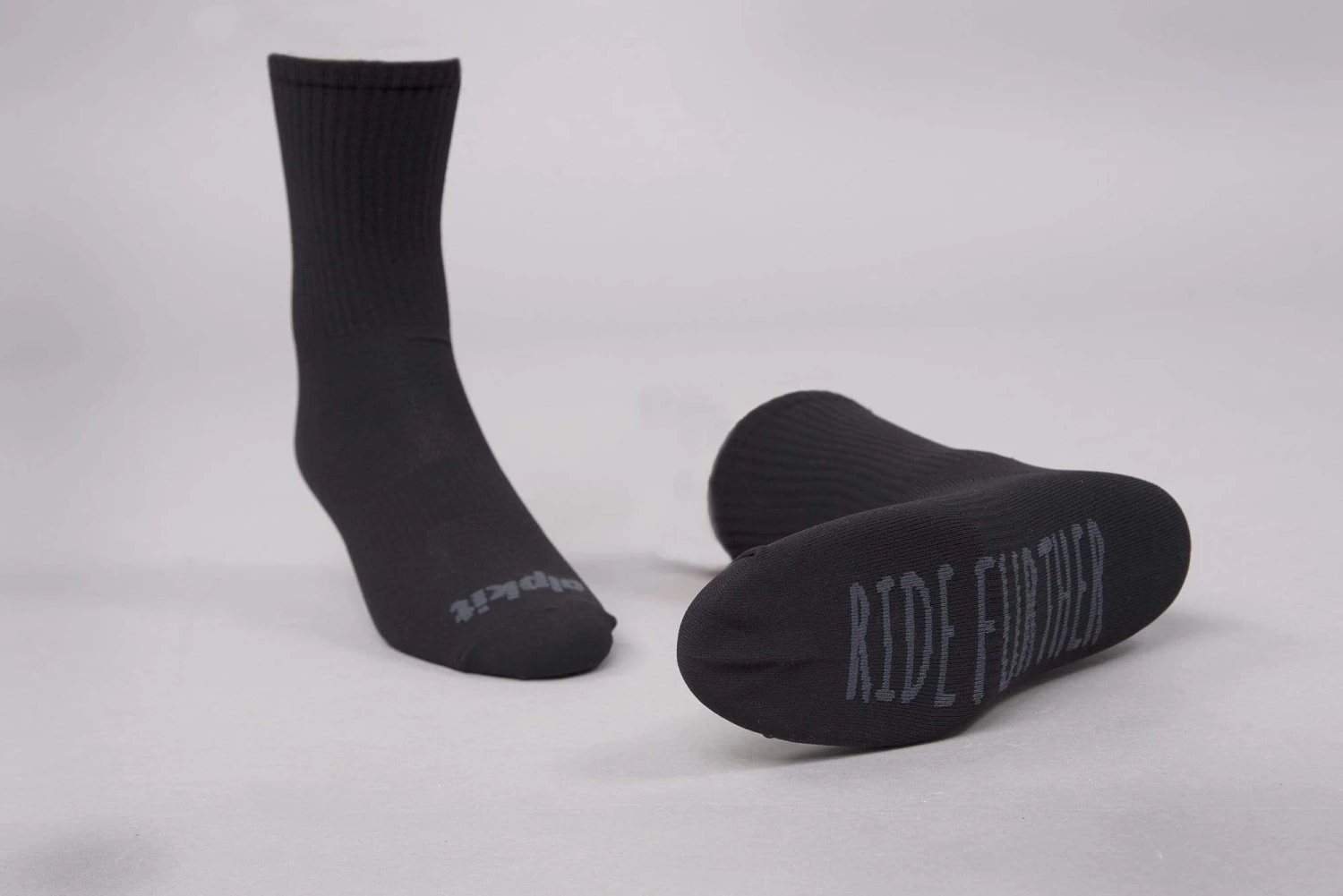 A snug, cycle-specific fit is designed to reduce movement inside your shoes (and any resulting loss of pedal power), with an elasticated arch support and flat toe seam to prevent rubbing. A mid length cuff is the perfect length, whatever your style of riding.