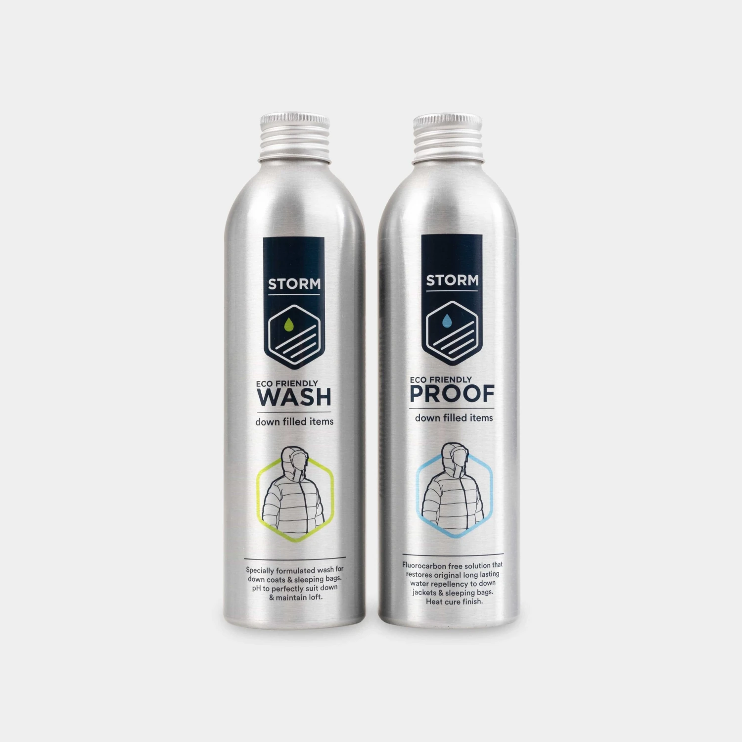 Within this kit you get all you need to care for your Down filled Gear. Down Wash, Down Proof and a couple of handy Dryer Balls to help maintain loft and insulation during the drying.