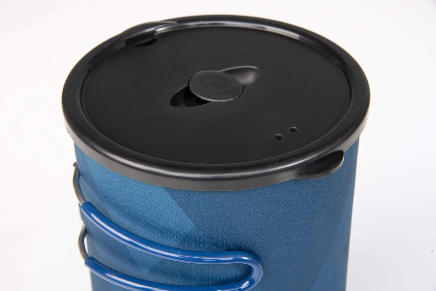 Weighing a mere 74 grams (only 40g extra if you swap the lids), the Coffee Press unscrews into three separate pieces for easy storage inside your Brukit pot.