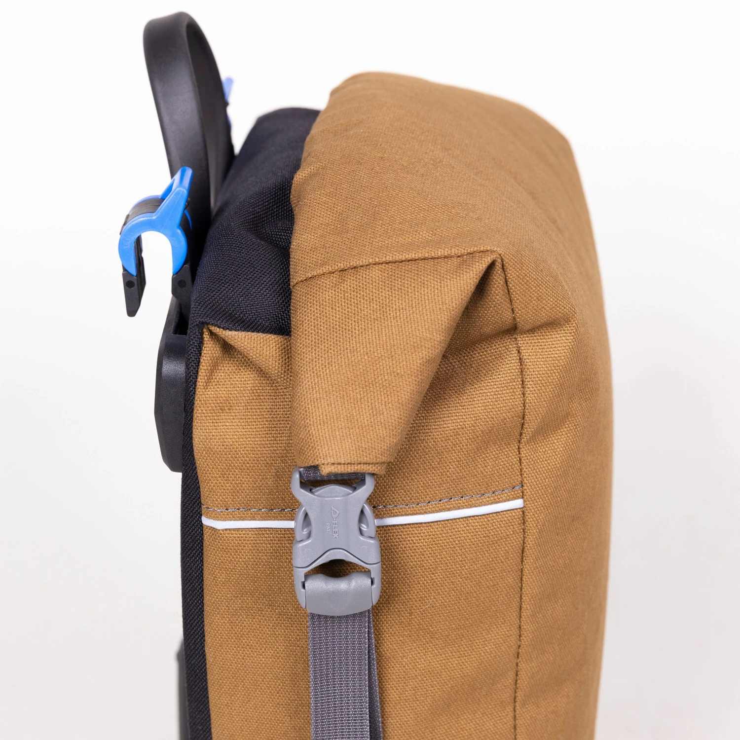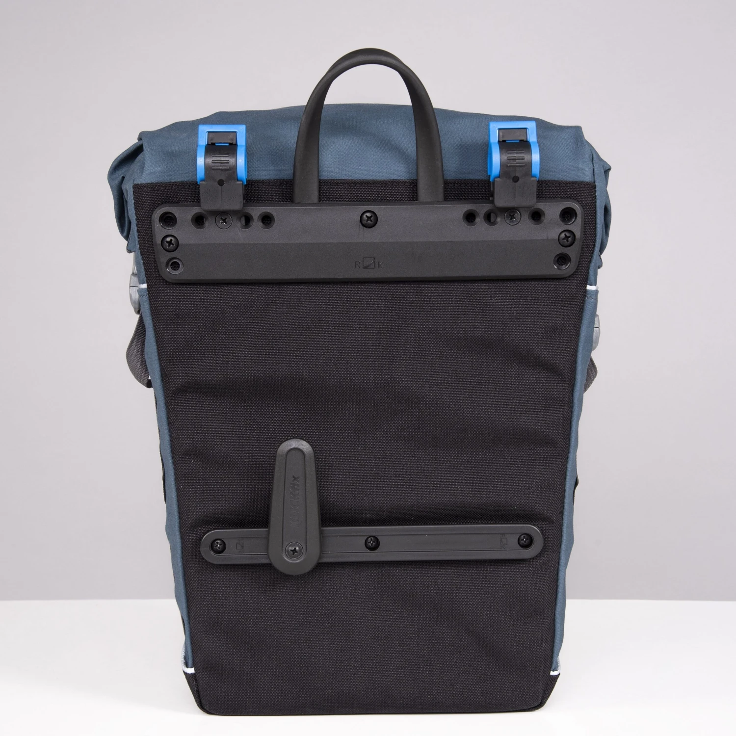 Because panniers experience some seriously hard use on daily commutes and extended tours, we’ve reinforced the base and back panel with abrasion-resistant Cordura® for extra longevity. Subtle reflective piping and hypalon light attachment patches on either side increase your visibility in low light.
