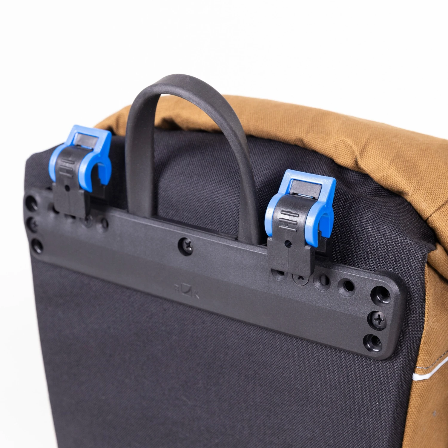 We’ve used KlickFix twist clips from Rixen & Kaul – widely regarded as the best you can get – to ensure the Caledonian panniers attach securely to your rack, without slipping or wobbling. The clips drop easily onto your rack and a simple ratchet system locks them into place.