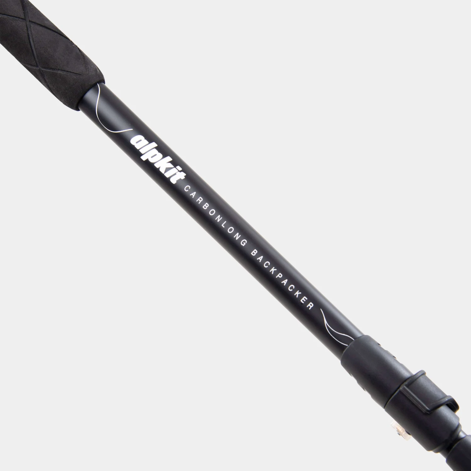 CarbonLong is a 3-section trekking pole that extends to 150 cm and weighs just 215 grams. We designed it to have a greater extension range for two main reasons: to give a better fit for taller trekkers and to let you rig your tarp high enough to sit comfortably underneath for a bit of shelter. They’re lightweight, easily adjustable, incredibly sturdy, and ace for hike-thrus and long-distance trails.