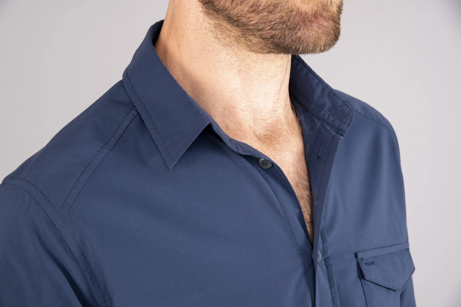 “By choosing a fabric with inherent mechanical stretch and tailoring the shirts for movement, we’ve eliminated the need for spandex (which holds moisture), keeping the shirt as light and fast-drying as possible.” – Ronnie, Design Manager