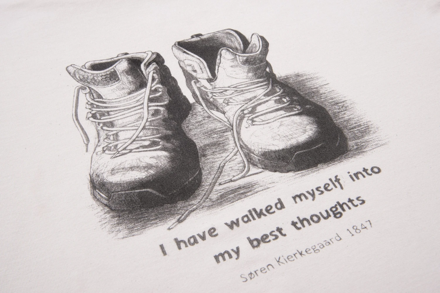 This is a one-off design by Peak District-based artist Clare Allan, with £2 from every t-shirt sale going towards improving mental health support and awareness. The etching features her favourite pair of walking boots with an accompanying quote by Danish philosopher Kierkegaard: “I have walked myself into my best thoughts.”