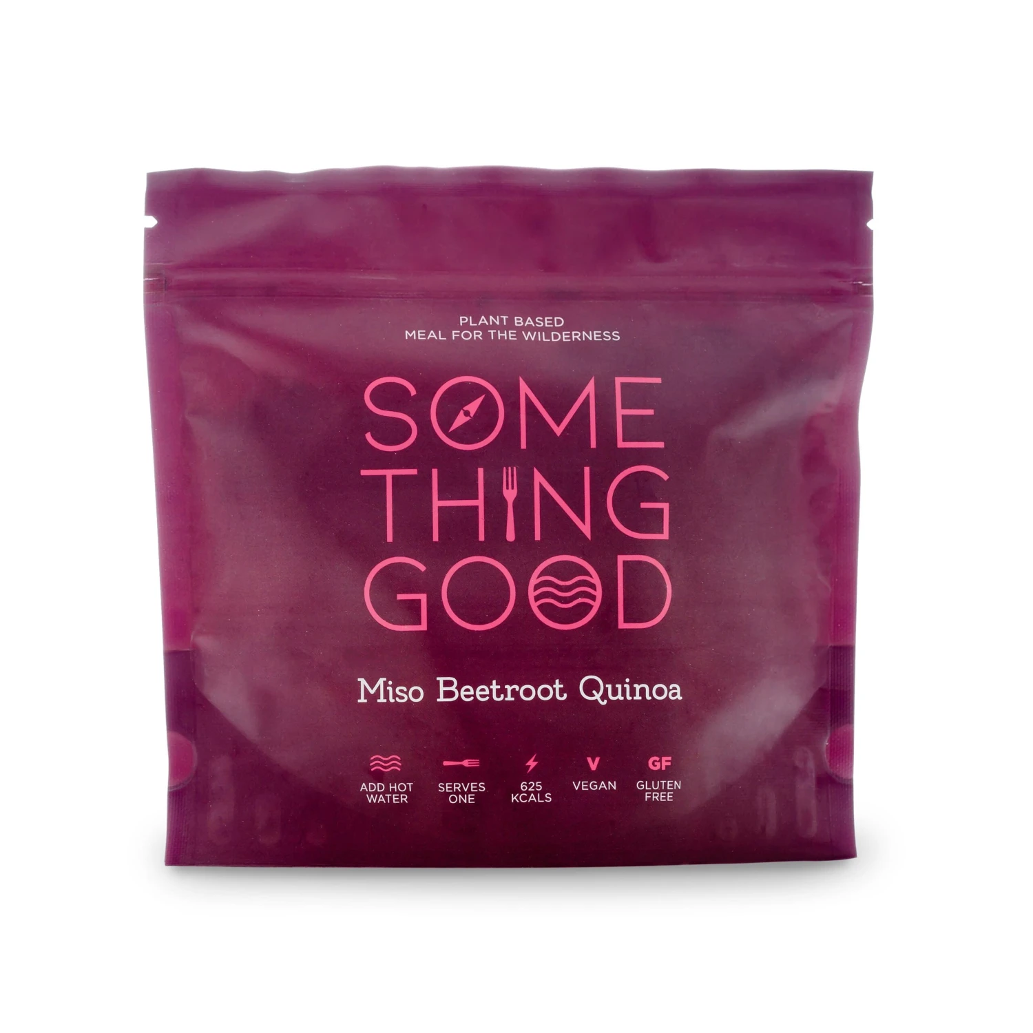 Something Good pouches provide quick, tasty and nutritious camping meals that are made entirely from plant-based ingredients.
