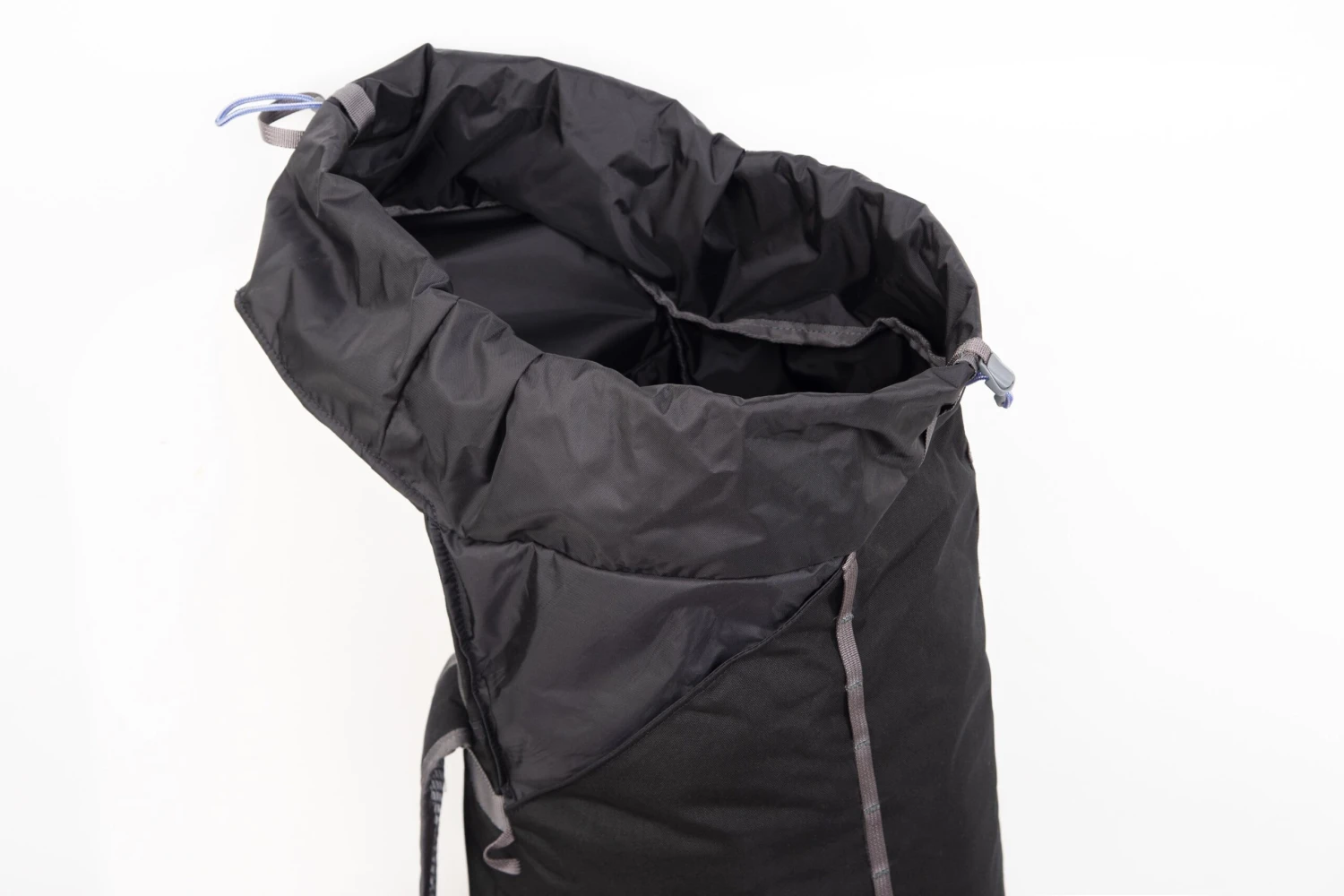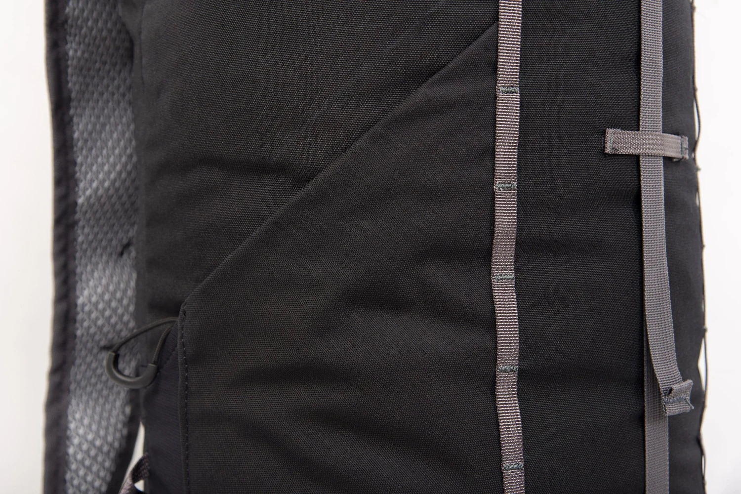 To keep you moving and reduce faffing to a minimum, the Traverse has one main compartment with a clever quick-cinch closure. This top pulls apart and draws shut with two fast motions, removing the need for fiddly clips. If you want extra carrying options for bulky items, you can also thread bungee cords or webbing straps through the front ladders and side loops.