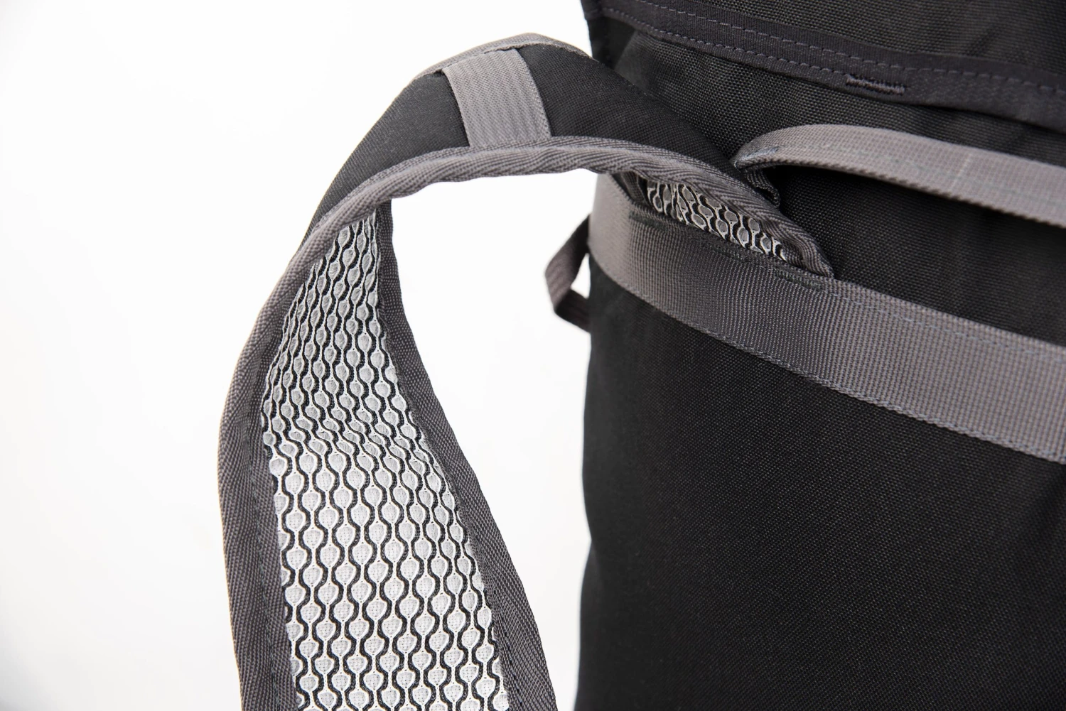 A thin strip of foam provides all the back cushioning you need for lighter loads (a neatly position sleeping mat will do that job anyway!) and the shoulder straps use a lightweight mesh padding. We’ve chose simple webbing waist and sternum straps to stabilise your pack without weighing you down.