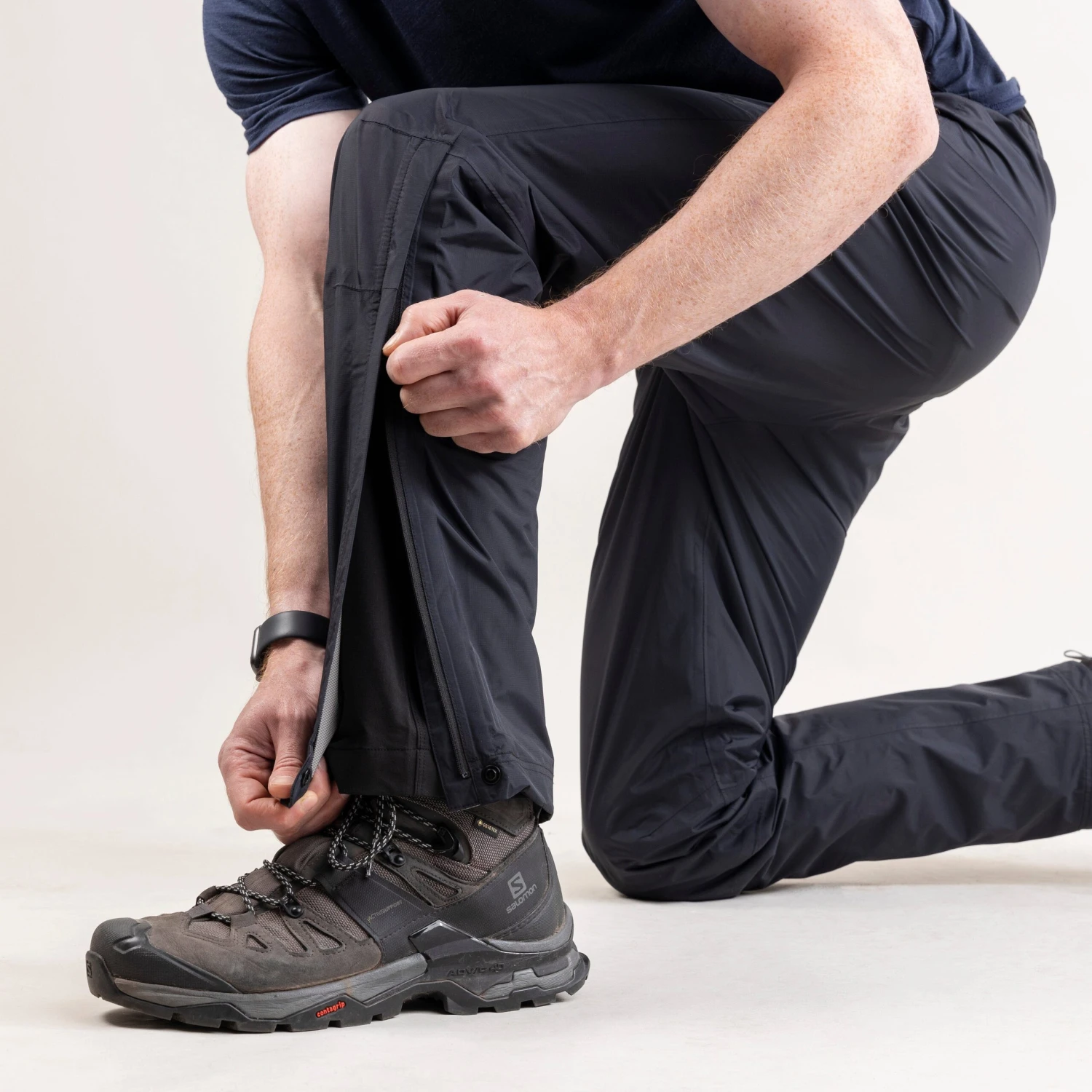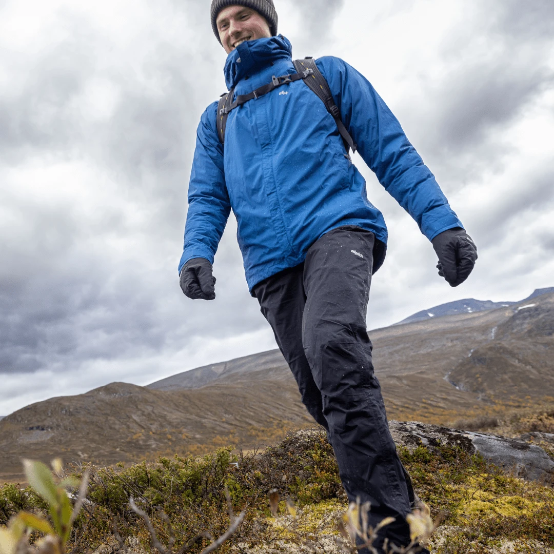 An elasticated waistband with drawcords on the waist and cuffs lets you get the perfect fit. Snap fasteners and knee length zips help when pulling them on over your boots in sudden downpours. Articulated for movement, with a relaxed fit so you can move freely and head into the hills with confidence.