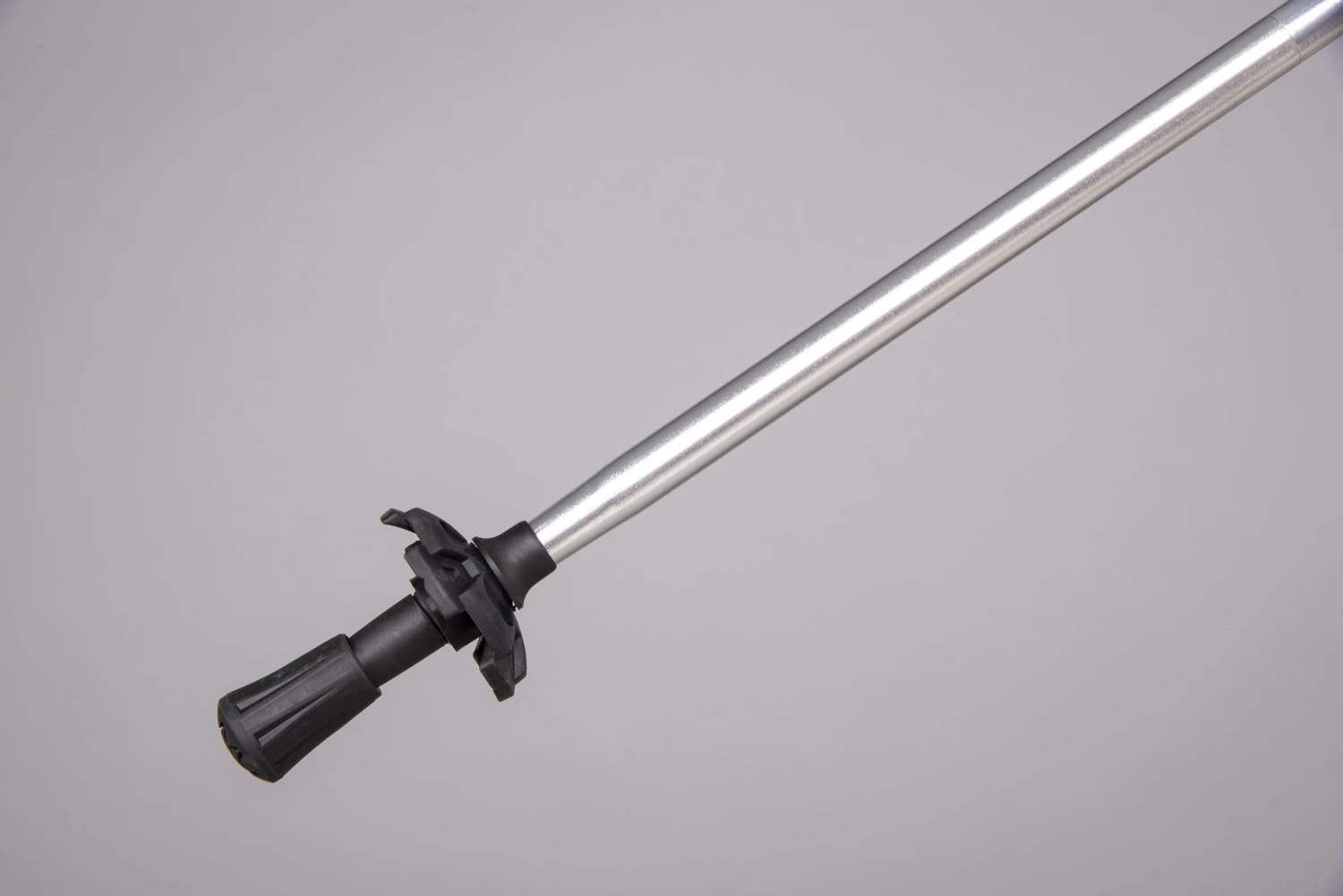 The lower sections fit together just like a tent pole, you then pull out the lower section which tightens the internal cable and locks tight with a push button lock. The length of the pole is adjusted by sliding the handle section up and down and is secured into place with a single easy operation snap lock widget. With only one locking mechanism, it is easier to maintain.