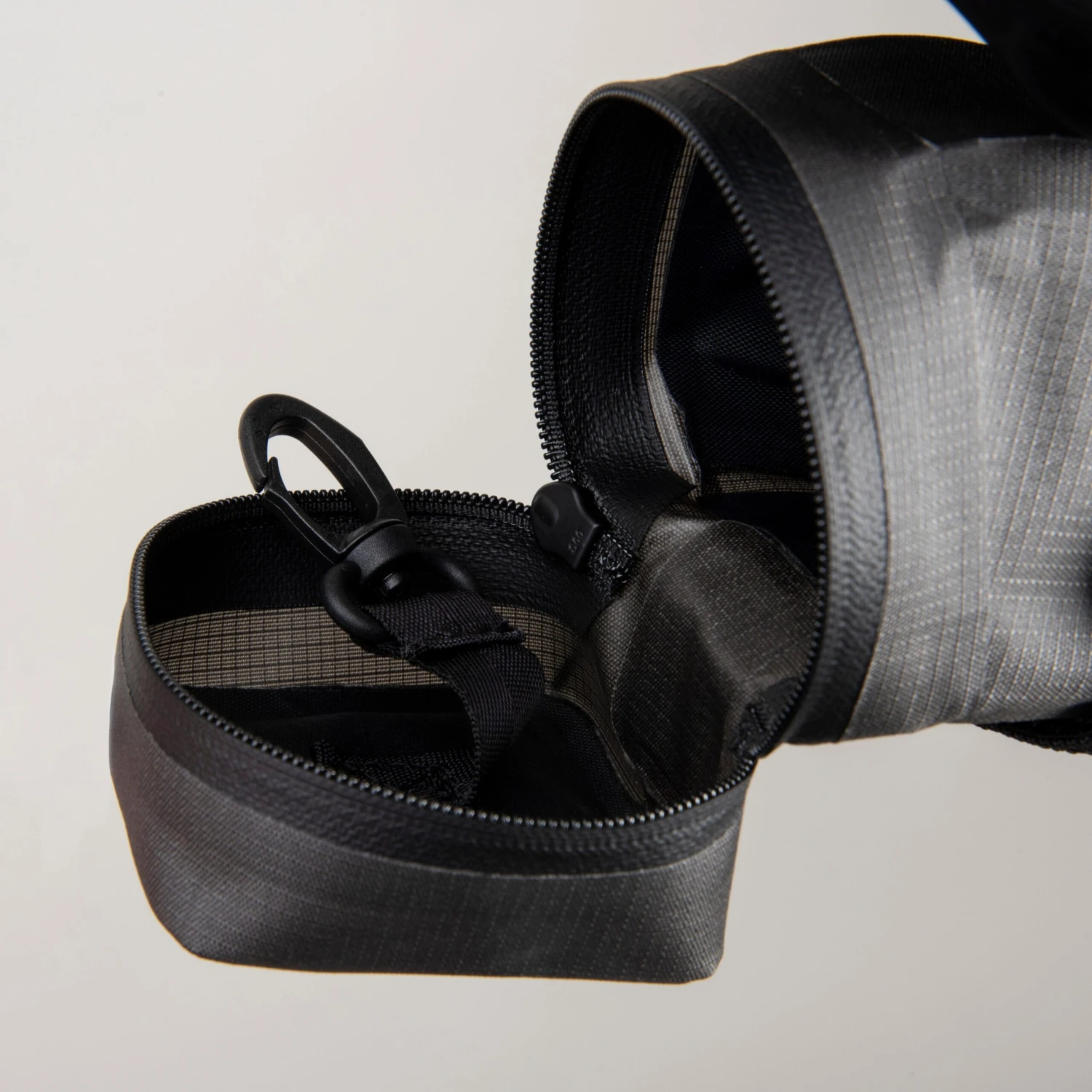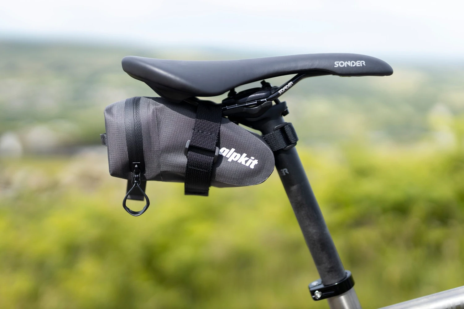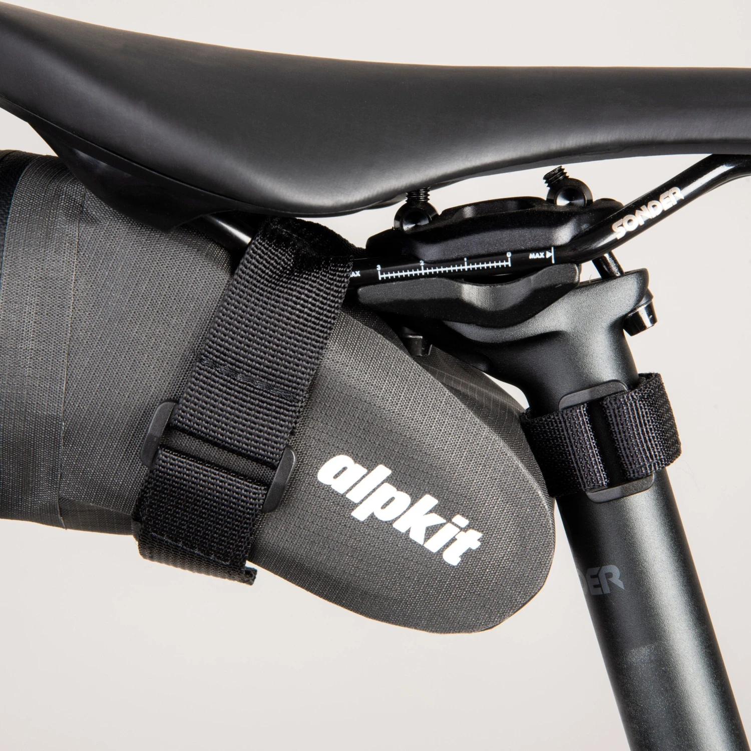 The lighweight, low profile design can live on your bike year-round, securely attaching to your saddle rails and seat post, with a hypalon loop to attach a rear light. Simple zip entry with large zip puller for easy mid-ride access and an internal clip loop to keep keys close at hand.