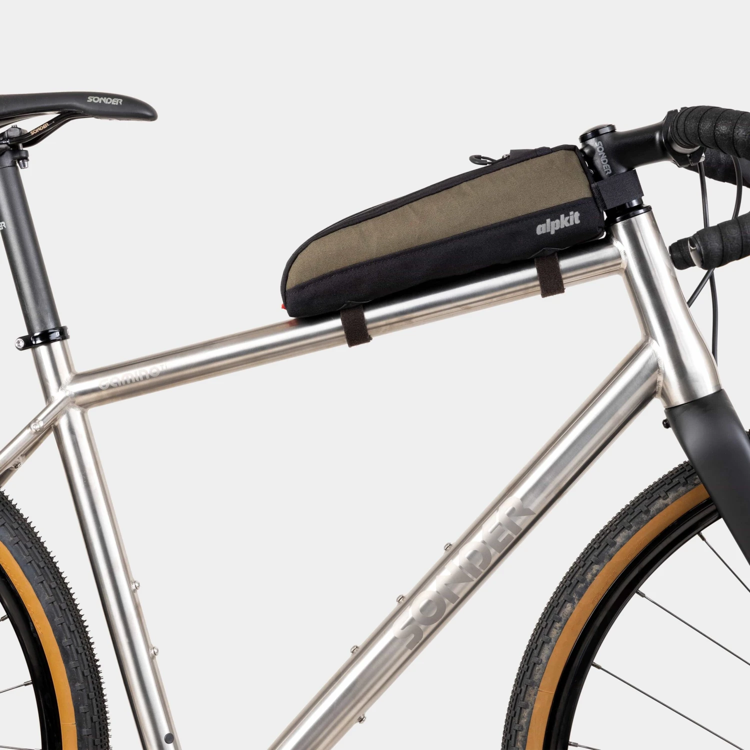 Fuel Pod Long is a 1.25L top tube bag providing quick mid-ride kit access in a streamlined profile that tucks in below your stem cap. The slim shape is well-suited for road bikes tubing designed to avoid contact with your knees when standing on the pedals. Velcro straps and padded side panels keep the bag stable and secure, with a front-facing cable port for light or dynamo cables. Hardwearing waterproof fabrics and a YKK AquaGuard® zip protect your kit from all but the heaviest rain. Built to last by hand in our UK Factory with a 25-year Alpine Bond.