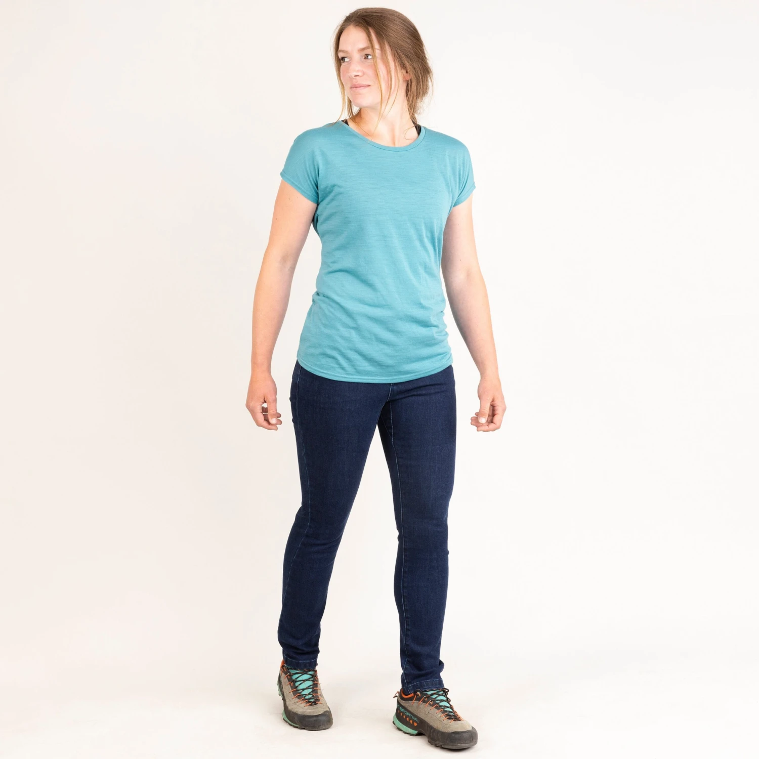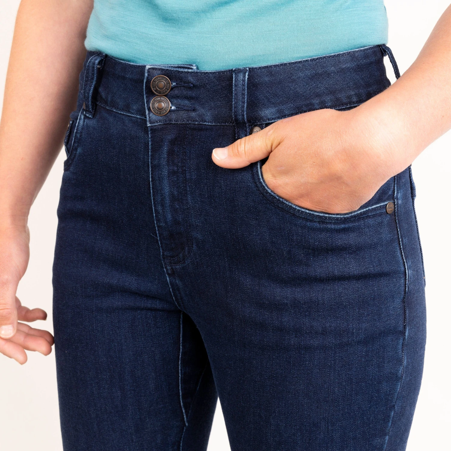 Jeanie are slim-fit jeans to climb, walk and ride. Tailored for activity with subtly articulated knees and a diamond-shape gusseted crotch.