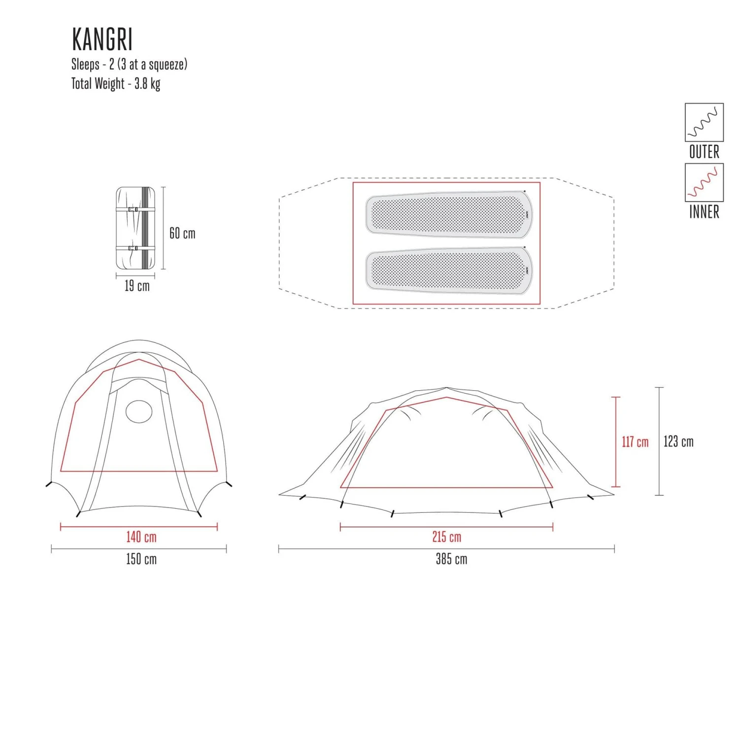 Light enough to carry, strong enough to cope, the Kangri 4 season 2 person mountain tent carefully balances durability, strength and weight to deliver a structure that will cope with the harsh conditions you may face on your expedition.