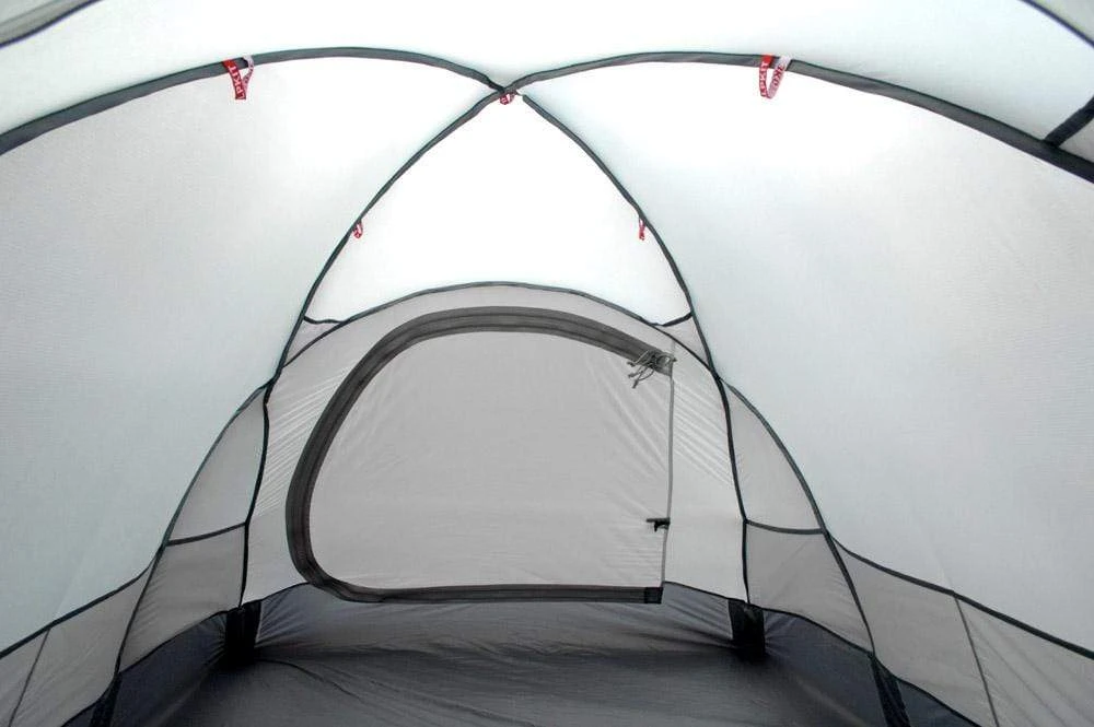 When you are high in the mountains you are going to be limited as to the perfect spot to pitch your tent. The Kangris geodesic design creates a large living space with good head-room for a relatively small tent footprint. The free standing nature of the geodesic structure means it doesn’t need pegs for its structural integrity opening up sites with marginal peg placements as options. Its strength is gained from the poles crossing at multiple points and we are not afraid to say we have based the Kangri on the original 4 poles concept. Many have tried but we don’t feel it can be bettered. The shock loads of the wind and the more static loads of snowfall are distributed more evenly throughout the pole structure and flysheet.