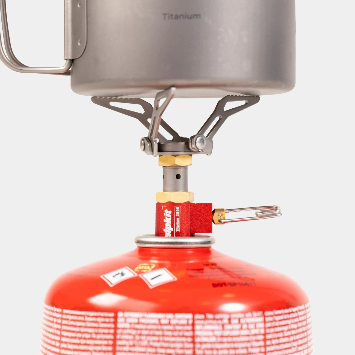 Kraku is as minimal as a gas stove gets. Titanium body, twisted wire gas control dial and a small burner head. It screws directly on top of your gas canister which it uses for stability. Partner it up with a MytiMug and a 100g gas cylinder and you’ll be cooking up a storm with this compact cooking system that will minimise the pack weight of many gram counting outdoor chefs.