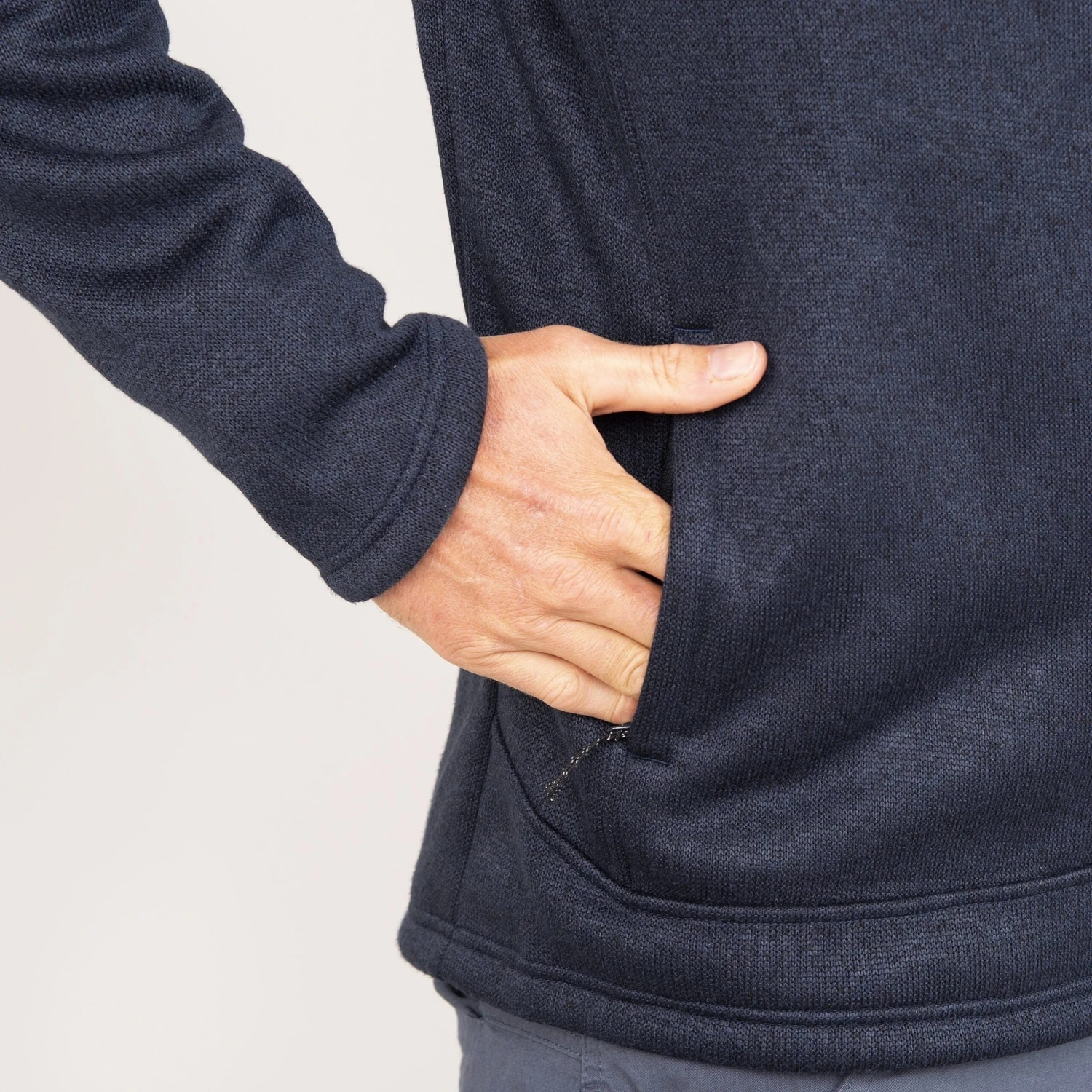 Because of its dense weave, the outer fabric is harder wearing than standard fleece, withstand substantial scuffs and scrapes. The heather knit construction is also less obviously ‘technical’ looking than other fleece fabrics so you won’t feel out of place in more casual settings.