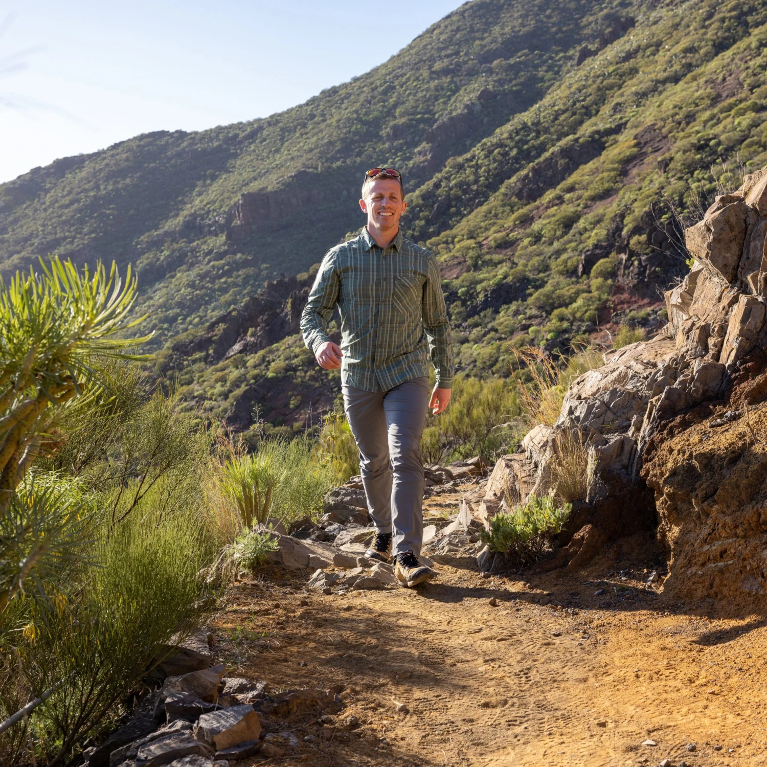 Nevero is a lightweight, men’s long-sleeve shirt for warm-weather comfort on summer hikes and rides.