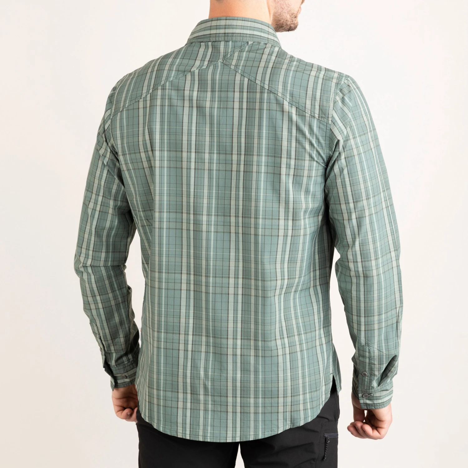 The nylon-polyester blend replicates the feel of a cotton shirt with the performance benefits of synthetic fibres. Tailored shoulders maintain freedom of movement while wearing a rucksack or reaching forward when on the bike.