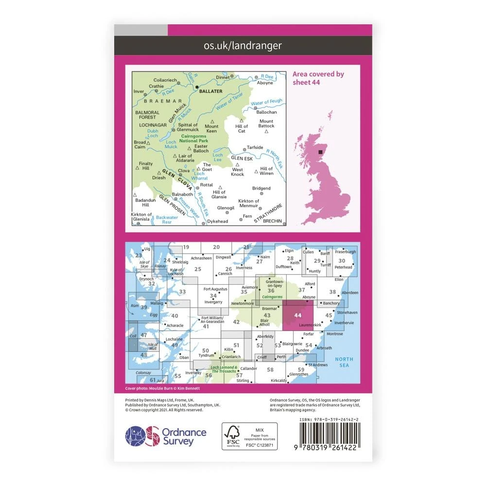 Landranger 44 covers a south-eastern section of Cairngorm National Park including Lochnager.