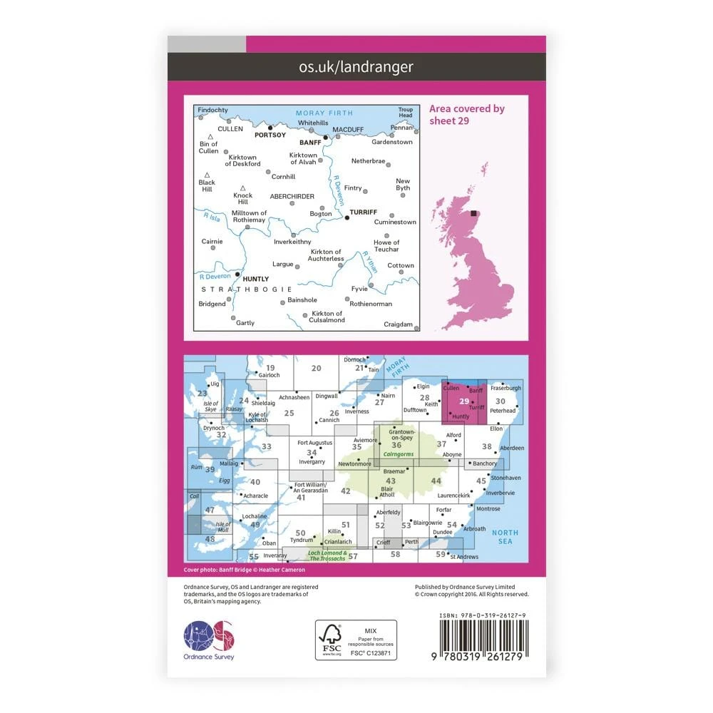 Landranger 29 covers a section of the Moray Firth and includes Banff, Huntly, Portsoy and Turriff.
