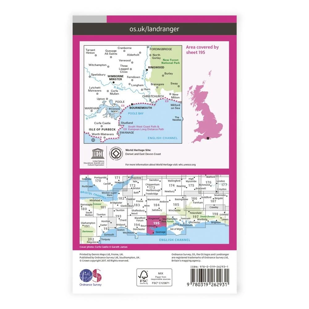 Landranger 195 covers Poole Bay, Brownsea Island and the New Forest National Park, and includes the South West Coastal Path.