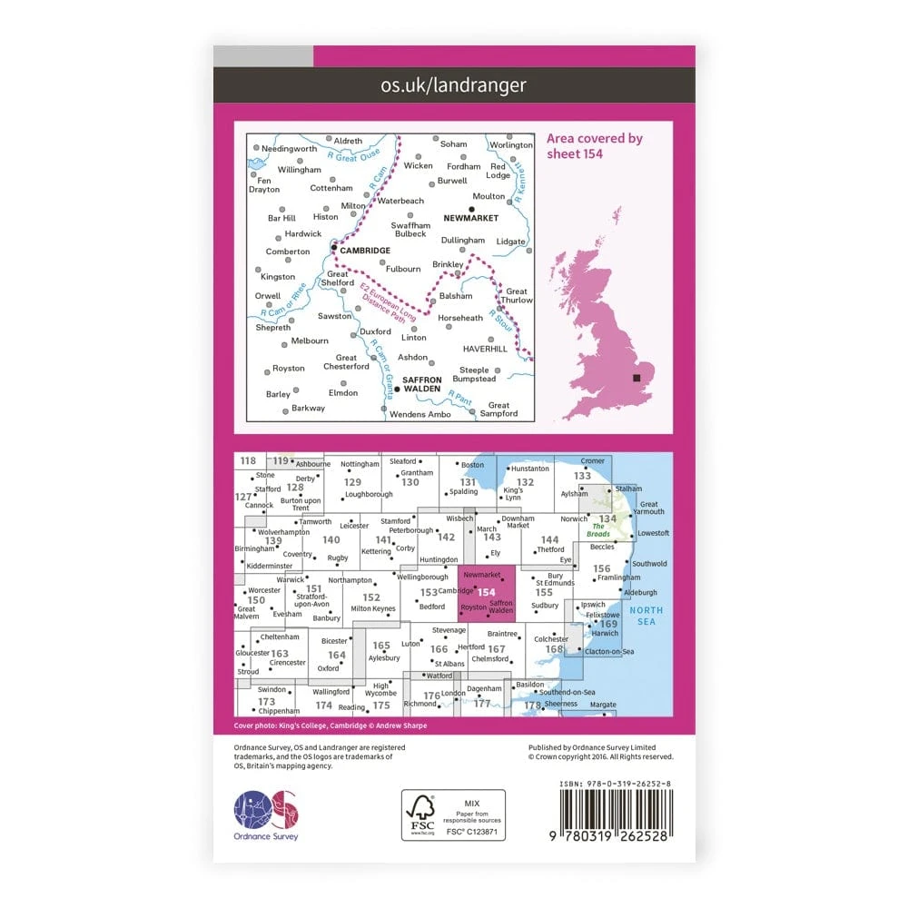 Landranger 154 covers Cambridgeshire, north Essex and west Suffok. Ideal for walking, backpacking and cycling.