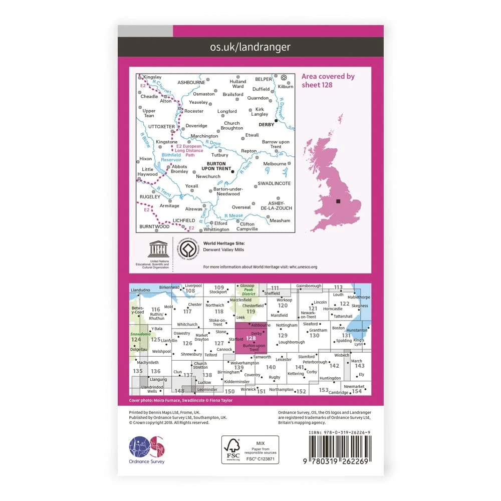 Landranger 128 covers south Derbyshire, east Staffordshire and north-west Leicestershire.