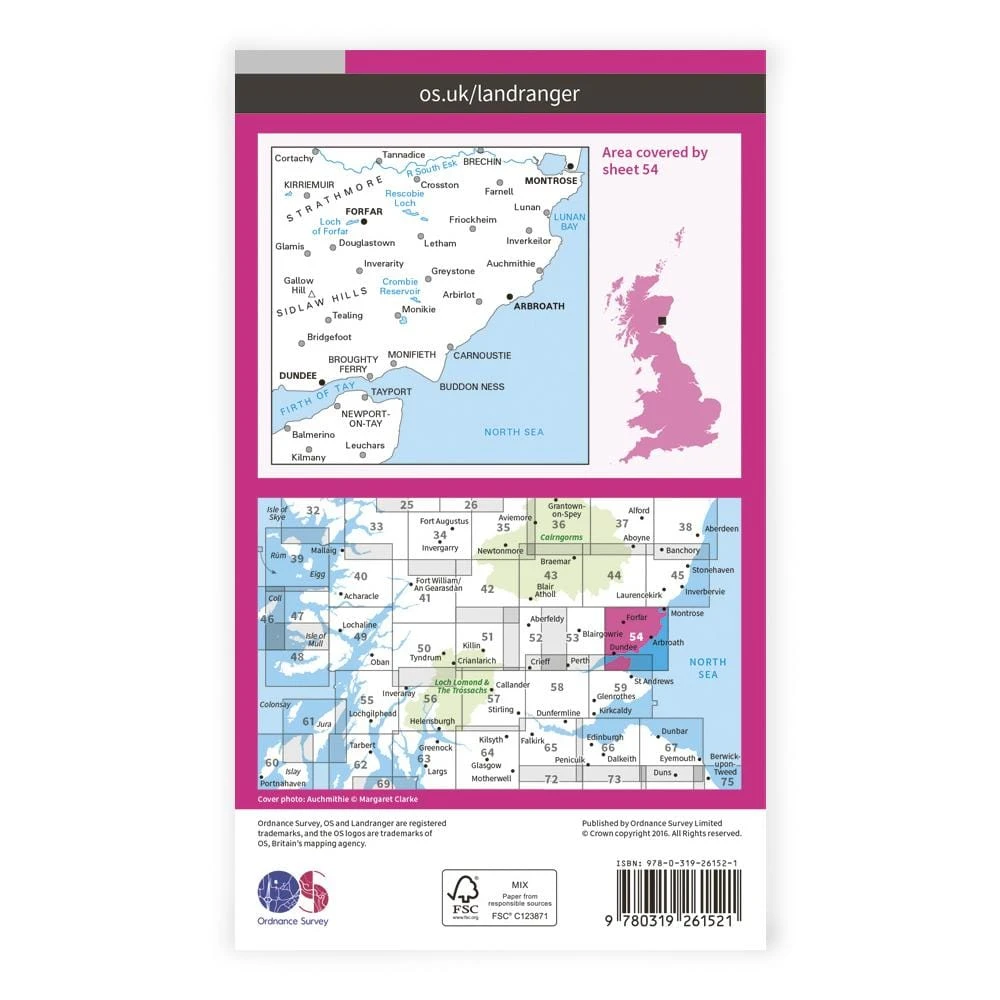 Landranger 85 covers southern Angus along the Firth of Tay and the North Sea coast.