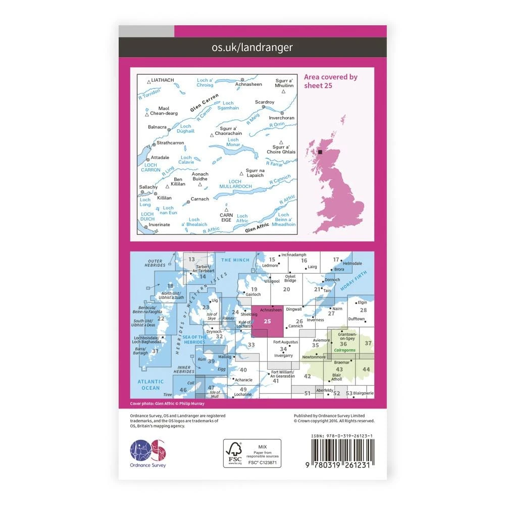 Landranger 25 covers a large section of the north-west Highlands of Scotland which includes part of the ancient Caledonian Forest.