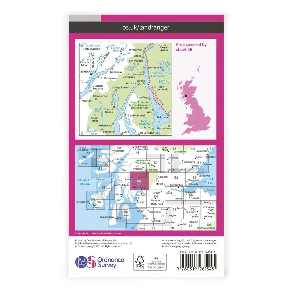 Landranger 85 covers the south-western part of Loch Lomond and the Trossachs around Loch Lomond, including Ben Lomond and part of the West Highland Way.