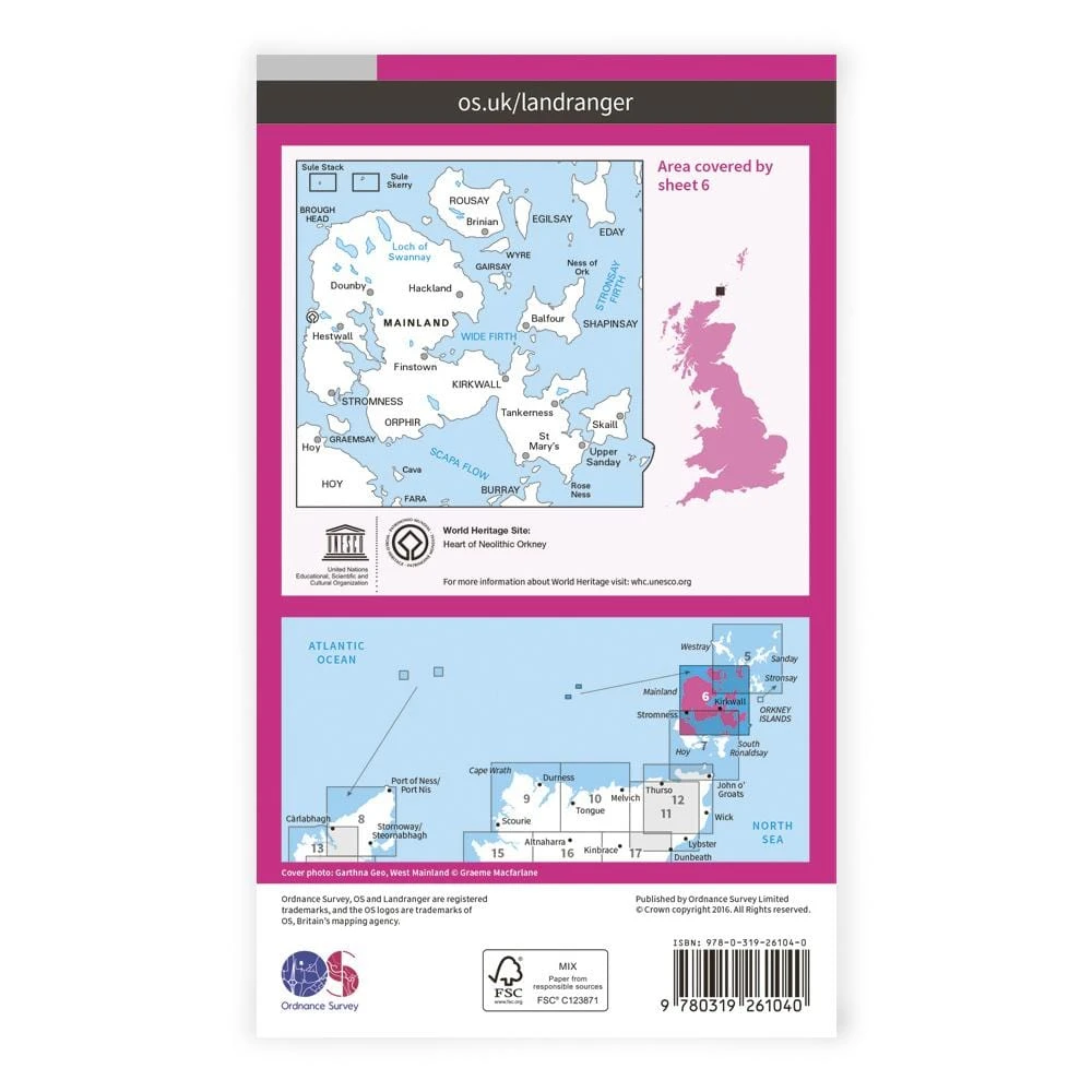 Landranger 6 covers the whole of Mainland, including Kirkwall and Stromness, Rousay, Shapinsay and Scapa Flow.