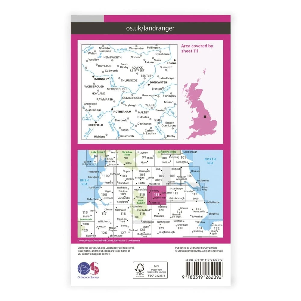 Landranger 111 covers South Yorkshire and part of north Nottinghamshire.