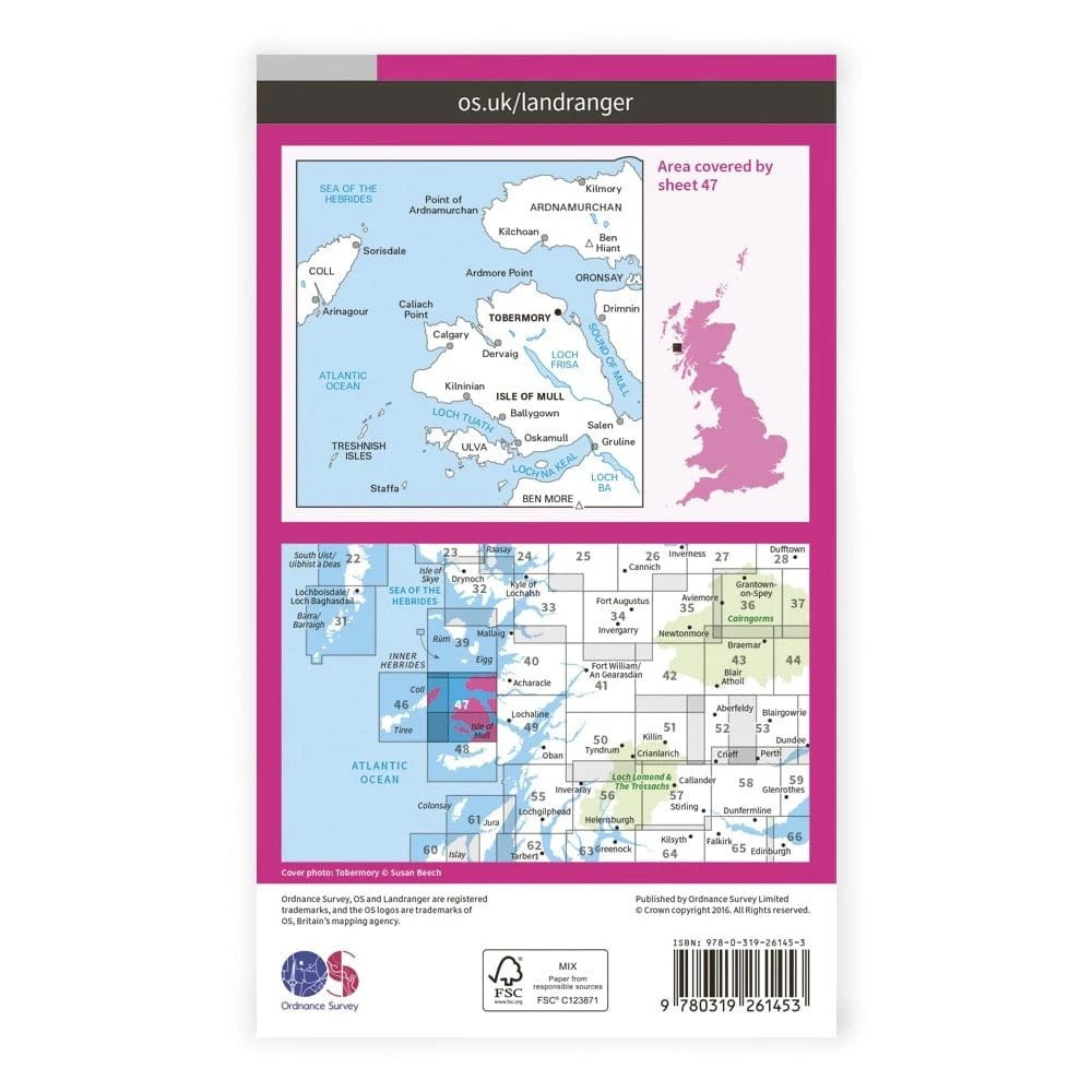 Landranger 47 covers the northern section of the Isle of Mull, the Isle of Ulva and the Ardnamurchan peninsula.