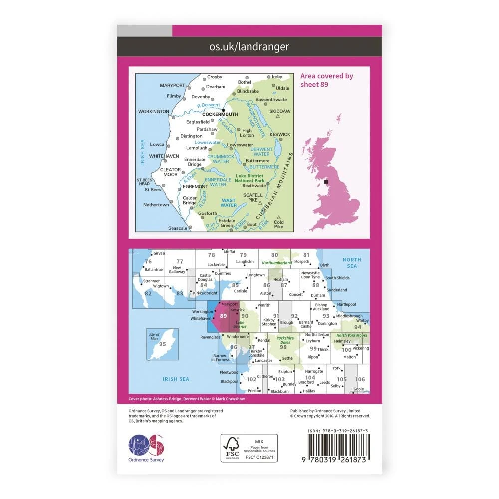 Landranger 89 covers the Cumbrian coast from Maryport to Seascale and the north-western part of Lake District National Park, including: Derwent Water, Buttermere and Ennerdale.