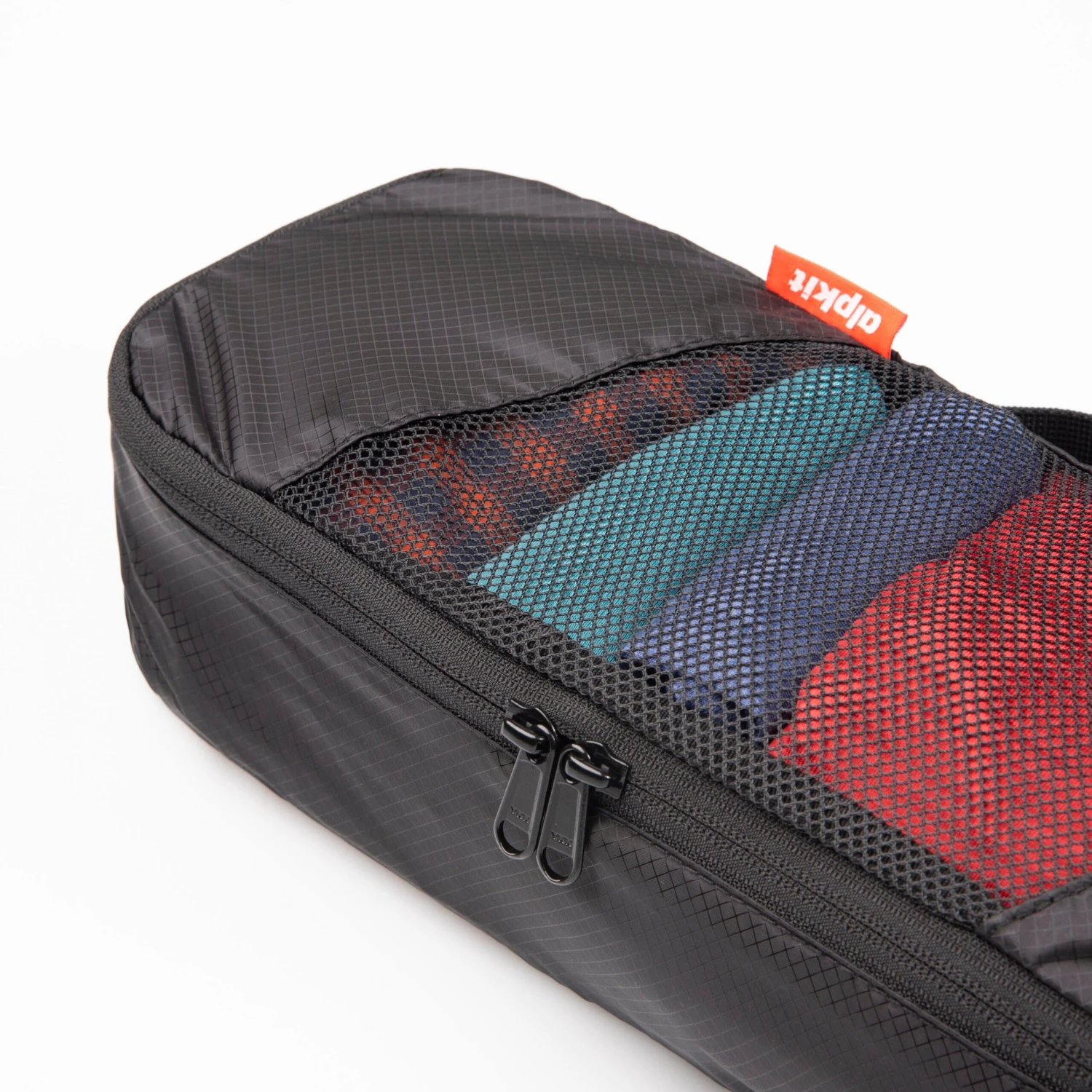 A mesh centre panel lets you see whats inside and allows air to escape when compressing your pack. With a simple zip closure to keep everything contained and a grab handle for pulling it out of your bag when its full to the brim.