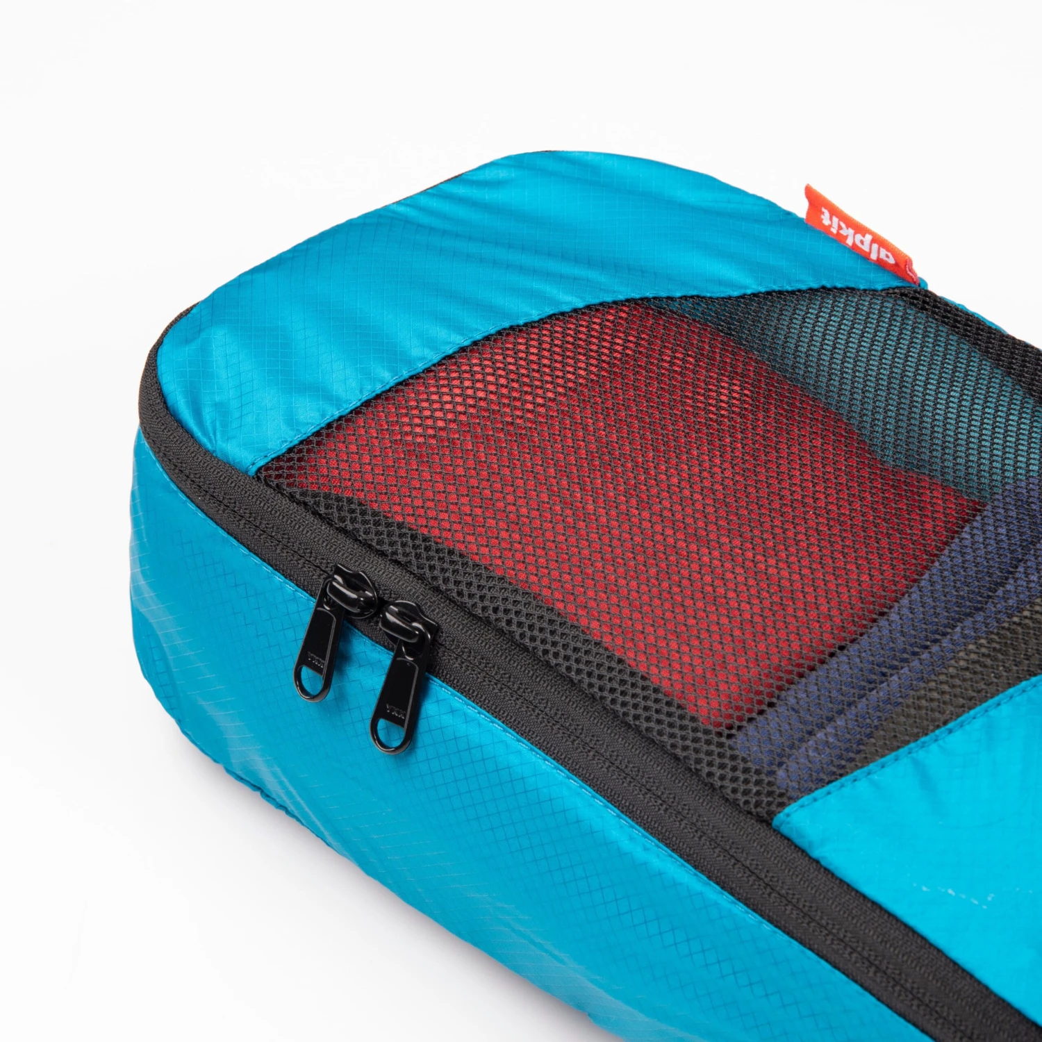A mesh centre panel lets you see whats inside and allows air to escape when compressing your pack. With a simple zip closure to keep everything contained and a grab handle for pulling it out of your bag when its full to the brim.