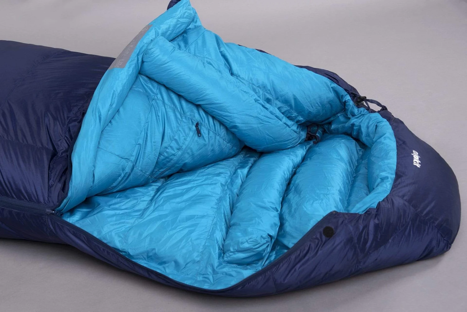 A comfortably spacious cut gives a natural night’s sleep. Box-wall horizontal baffles with trapezoid side baffles prevent down migration, minimizing heat loss; adjustable head closure and draft collar lets you snuggle down to fend off the drafts.