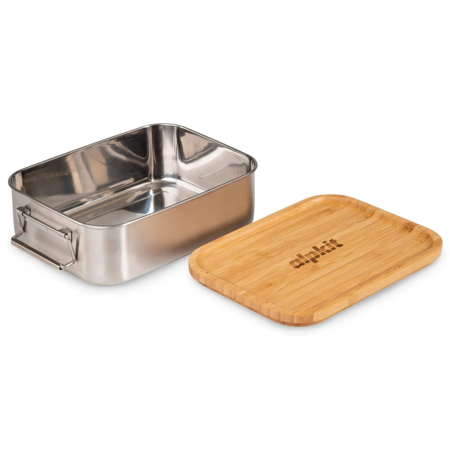 The clasps make a secure, durable seal. The lunchbox is made from better sourced materials. The stainless steel is recycled, and the bamboo lid is certified as sustainably sourced. It’s a durable, reusable alternative to plastic Tupperware.