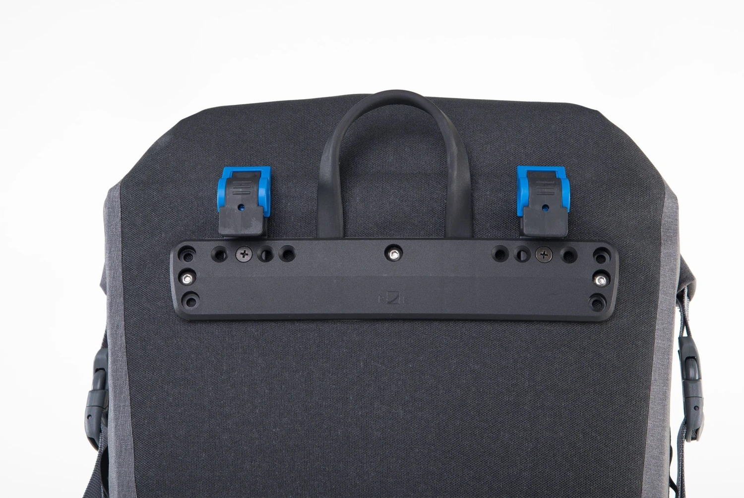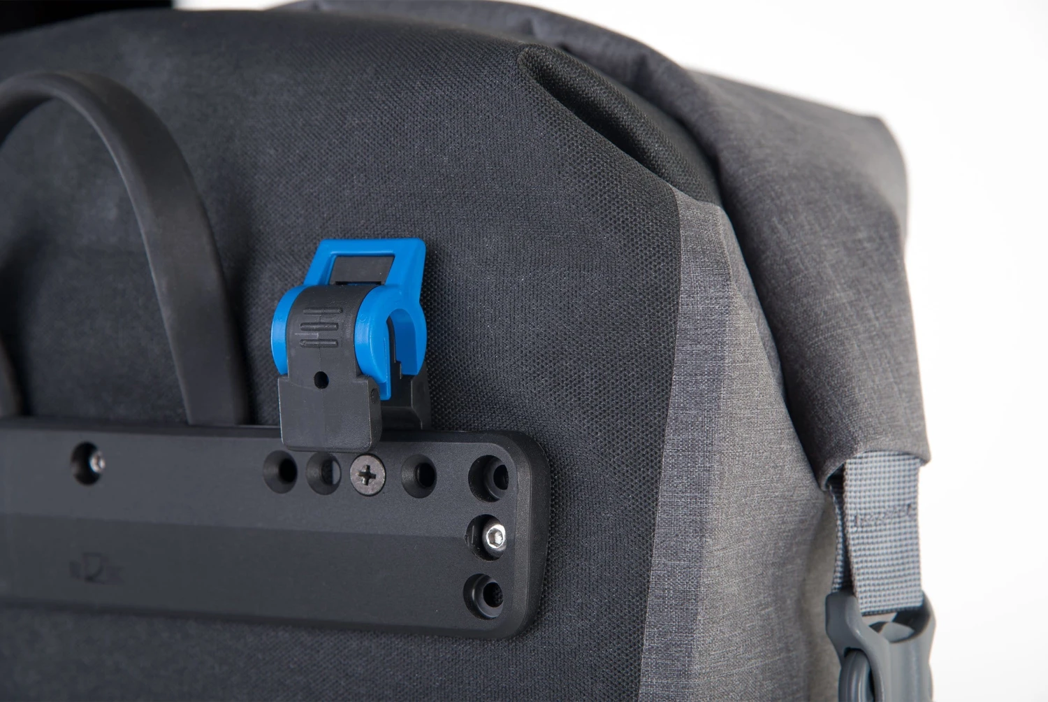 We’ve used KlickFix twist clips from Rixen & Kaul – widely regarded as the best you can get – to ensure the Tolari panniers attach securely to your rack, without slipping or wobbling. The clips drop easily onto your rack when wrestling with heavy panniers, and a simple ratchet system locks them into place.