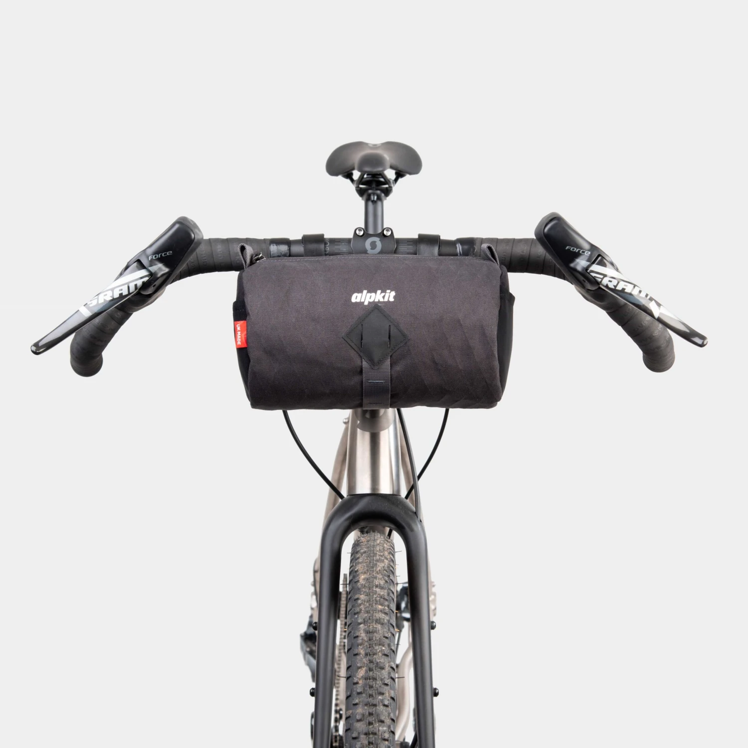Toploader is a weatherproof handlebar bag with a zipped entry and 4L capacity. Sitting neatly between drop bars, it provides plenty of easy access storage on long day rides – whether on gravel or tarmac. The hardwearing waterproof fabrics and water-resistant YKK AquaGuard® zips are designed to protect your kit from all but the heaviest rain. A spacious main compartment is big enough for a lunchtime sandwich and a lightweight waterproof jacket. We’ve added mesh side pockets for stashing snacks or arm warmers on the move. Toploader is built to last in our UK Factory and covered by our 25-year Alpine Bond.