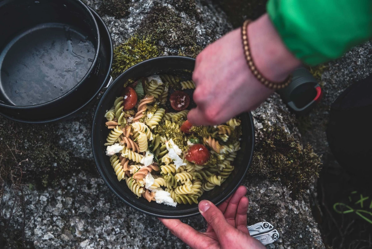 Get all that spaghetti in the boiling water, then get your garlic golden brown with a healthy glug of olive oil, add your grated ginger, chilli and parsley, and mix it into your drained spaghetti in that generously-sized Vagabond pan. Just because you’re camping, it doesn’t mean you can’t dine in style.
