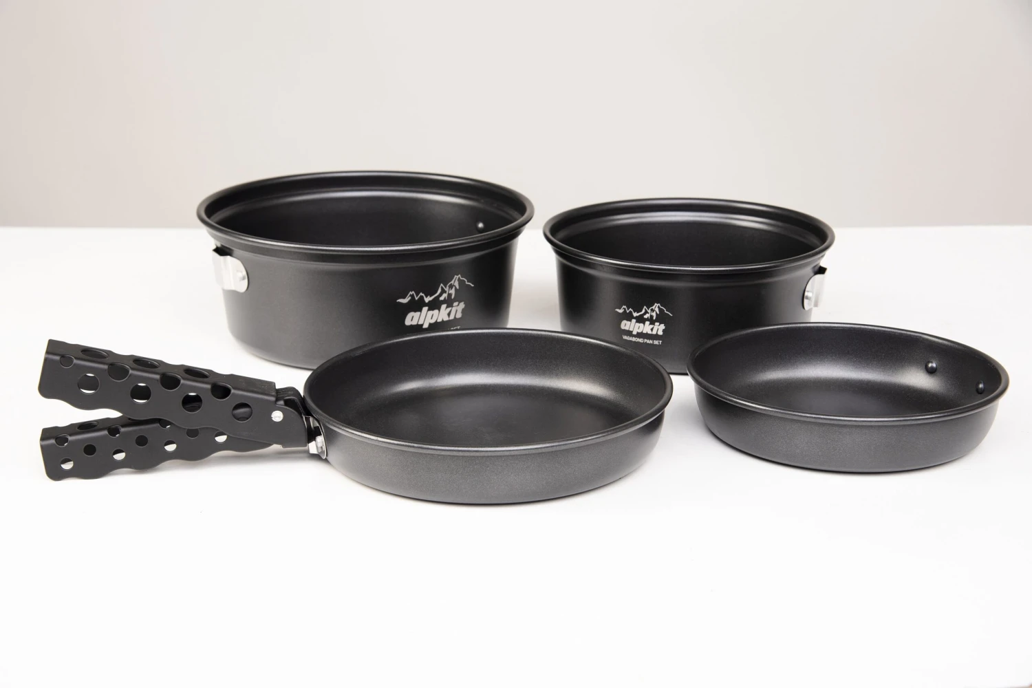 The idea behind Vagabond is that you can cook a meal for 4 without sending swathes of pasta over the floor every time you give it a stir. The pans have a 2 and 1.3 litre capacity, with wide frying pans that double ups as lids. The non-stick coating is food-grade and PFOA-free, so it is completely safe-to-use for even the more enthusiastic of spatula work.